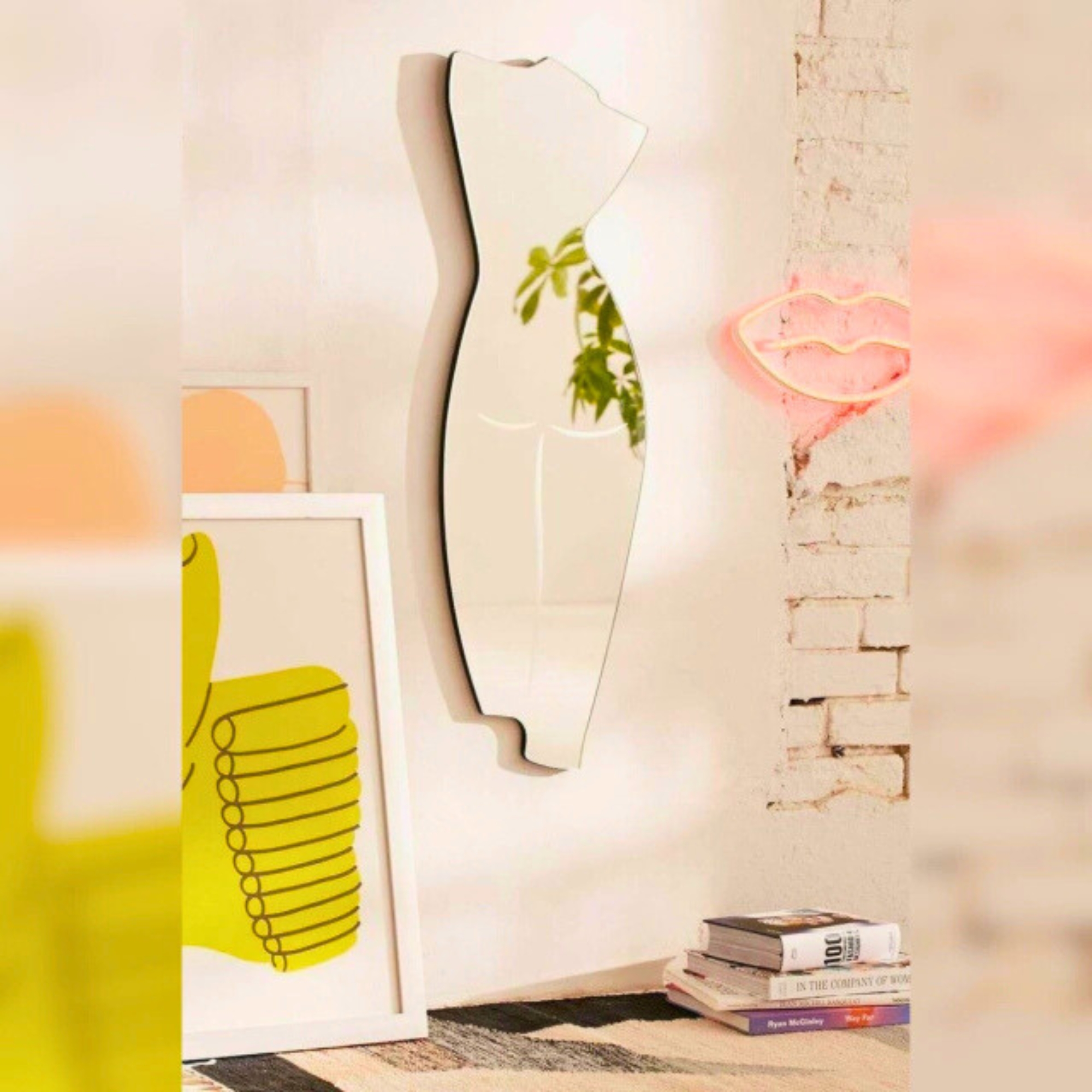Terminación premium estilo industrial. Permite apoyar o colgar el espejo
